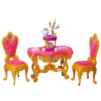 Игровой набор Белль - в него входят стол и два стула, выполненные в причудливом дизайне. Кроме того, в комплект включены посуда (чашки, блюдца, салфетницы), а также веселые чайник и подсвечник - как и в мультфильме "Красавица и Чудовище", они ожили и доброжелательно улыбаются.