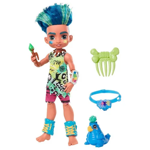 Путешествуйте назад во времени вместе с куклами Cave Club! Куклы с дичайшими прическами одеты в неоновые наряды, а сопровождают их любимые питомцы. Художник Слейт и его зверюшка Тегги обожают творчество и граффити! Кукла снабжена точками артикуляции и аксессуарами для творческих приключений. Детям понравится сочинять новые истории из незапамятных времен. Соберите всех кукол Cave Club, чтобы разыгрывать увлекательные сюжеты с целой доисторической командой! Каждая кукла продается отдельно. Цвета и элементы декора могут отличаться от изображений.