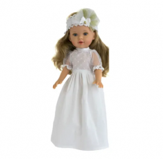 чаровательная кукла "Марина" в платье невесты сможет порадовать любую девочку в качестве подарка! Классическая игровая кукла полностью изготовлена из качественного гипоаллергенного винила. Все детали туловища выглядят пропорционально. Руки, ноги и голова свободно двигаются. У куклы роскошные длинные волосы, блестящие и слегка вьющиеся. Девочке доставит большое удовольствие за ними ухаживать и расчесывать. Личико куклы разрисовано вручную. Марина очень миловидная кукла, у нее пухлые щечки и губки "бантиком". Глазки акриловые, с ресничками, не закрываются. Одежда разработана и сшита на кукольной фабрике по индивидуальным эскизам из натуральных материалов. "Марина" одета в белоснежный праздничный наряд с декоративной повязкой на голове, состоящий из белого платья из хлопка и пышной юбки из сетки, которую можно снять. На ногах надеты перламутровые туфли из искусственной кожи. В виде дополнительных аксессуаров в коробке вы найдете маску для сна, футболку и гольфы.