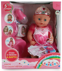 - Нажимая на грудь куклы, дети услышат знакомые с детства стихи детской писательницы Агнии Барто.