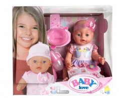 Комплектация: пупс, бутылочка, горшок, тарелка, подгузник, соска.