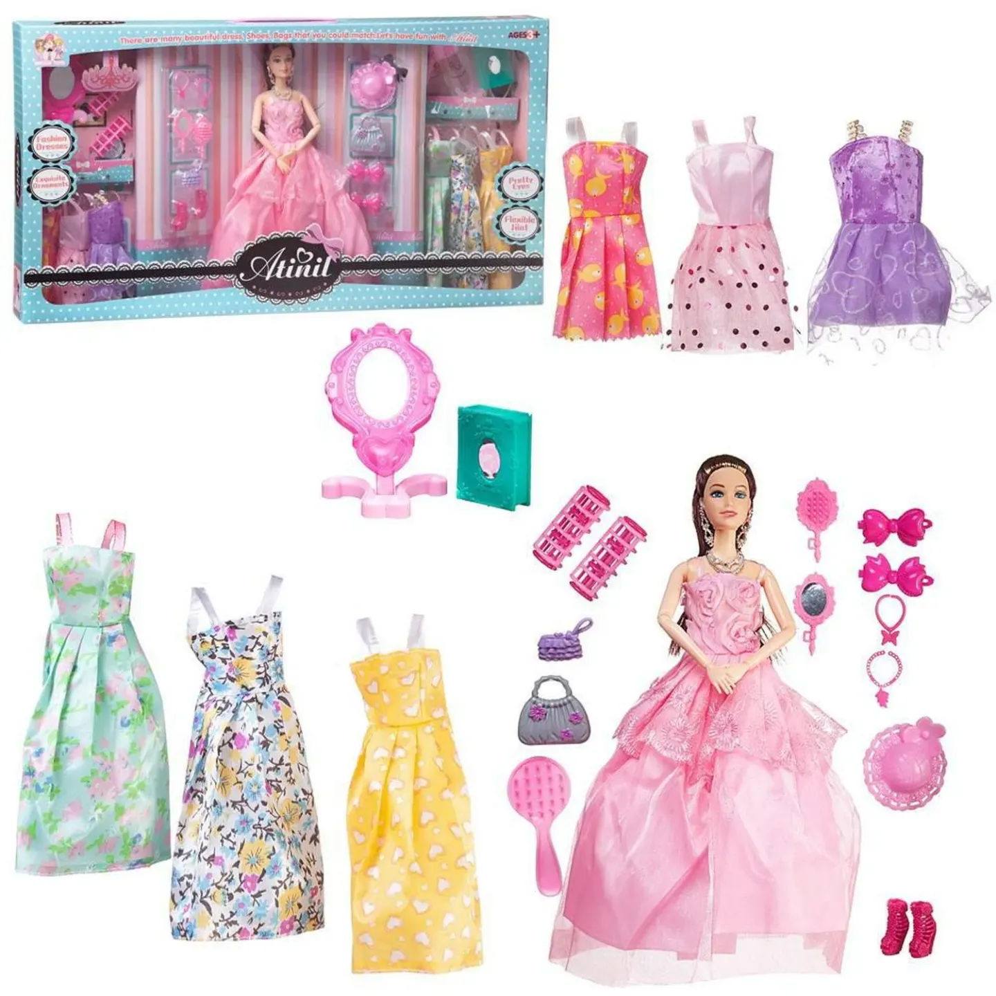 Кукла Atinil выглядит как красивая молодая девушка, которая разбирается в новинках моды и любит следить за собой. Ребенок, играя с такой куклой, сможет придумать множество различных сюжетов. Также в наборе имеются модные аксессуары. У куклы подвижны части тела, благодаря чему в процессе игры девочка сможет менять положение игрушки. А в ее гардеробной есть еще 6 красивых платьев и многочисленные аксессуары.
