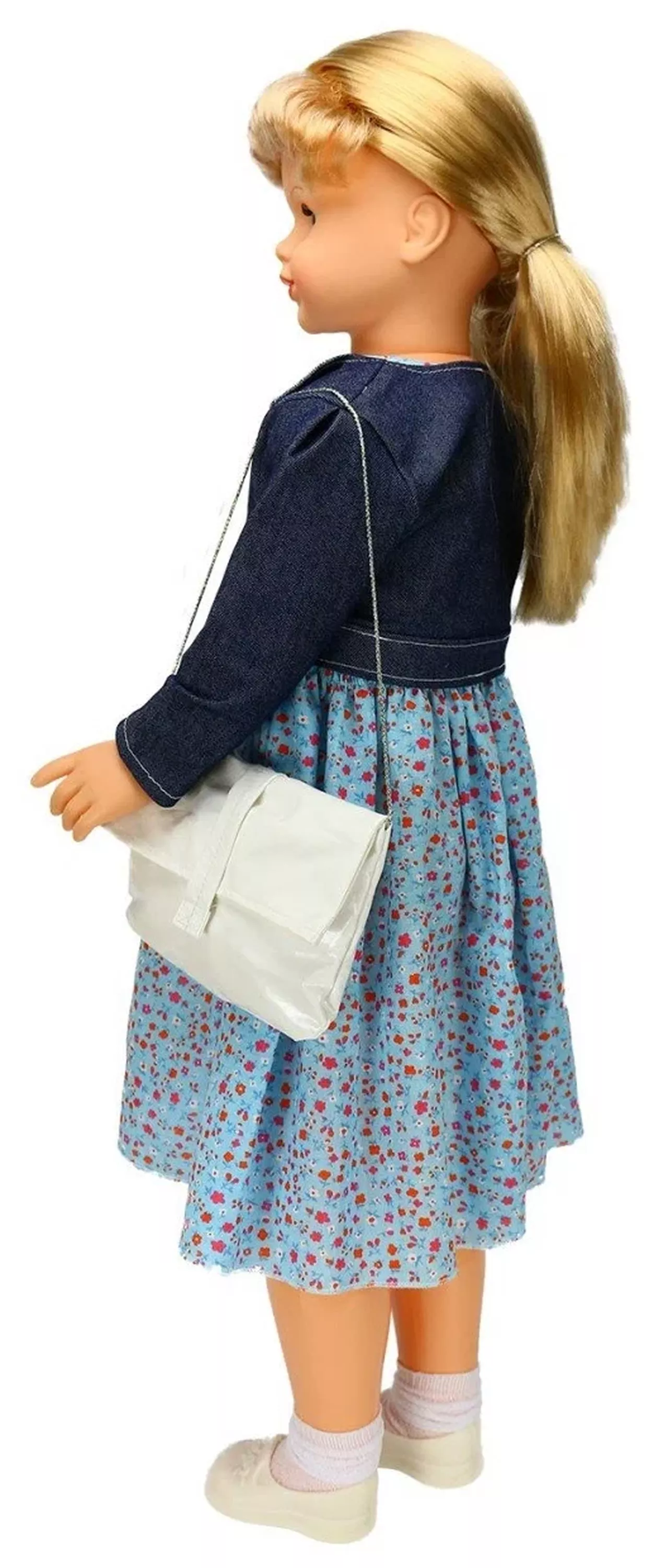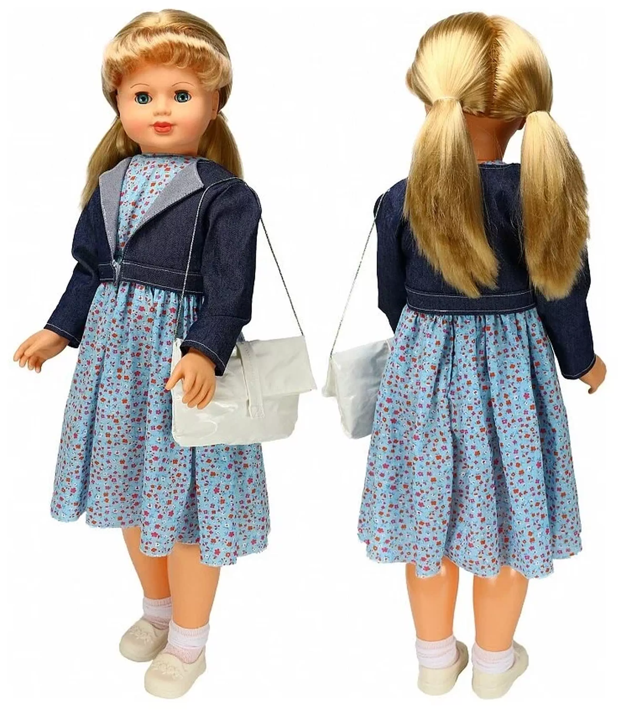 Кукла Снежана 2 кэжуал - настоящая милашка и хорошая подруга для ребенка. Она одета в летнее платье без рукавов из х/б ткани, куртку из джинсовой ткани, носки из трикотажа. Комплект дополняют туфли. С куклой можно придумывать множество различных игр, которые будут способствовать развитию образного мышления, воображения и психо-эмоциональному становлению, а переодевая куклу, ребенок будет тренировать мелкую моторику. Особенностью данной игрушки является то, что Снежана 2 оснащена механизмом движения и ее можно водить за руку - это поможет сделать игру еще интереснее и реалистичнее. Во избежание поломки механизма движения куклы ее не рекомендуется усаживать. Кукла Снежана Весна 2 озвучена (звуковое устройство расположено на спинке), имеет вставные глаза и пропорциональное тело. Ручки и голова выполнены из эластичного, приятного на ощупь винила, а туловище и ноги из пластмассы.