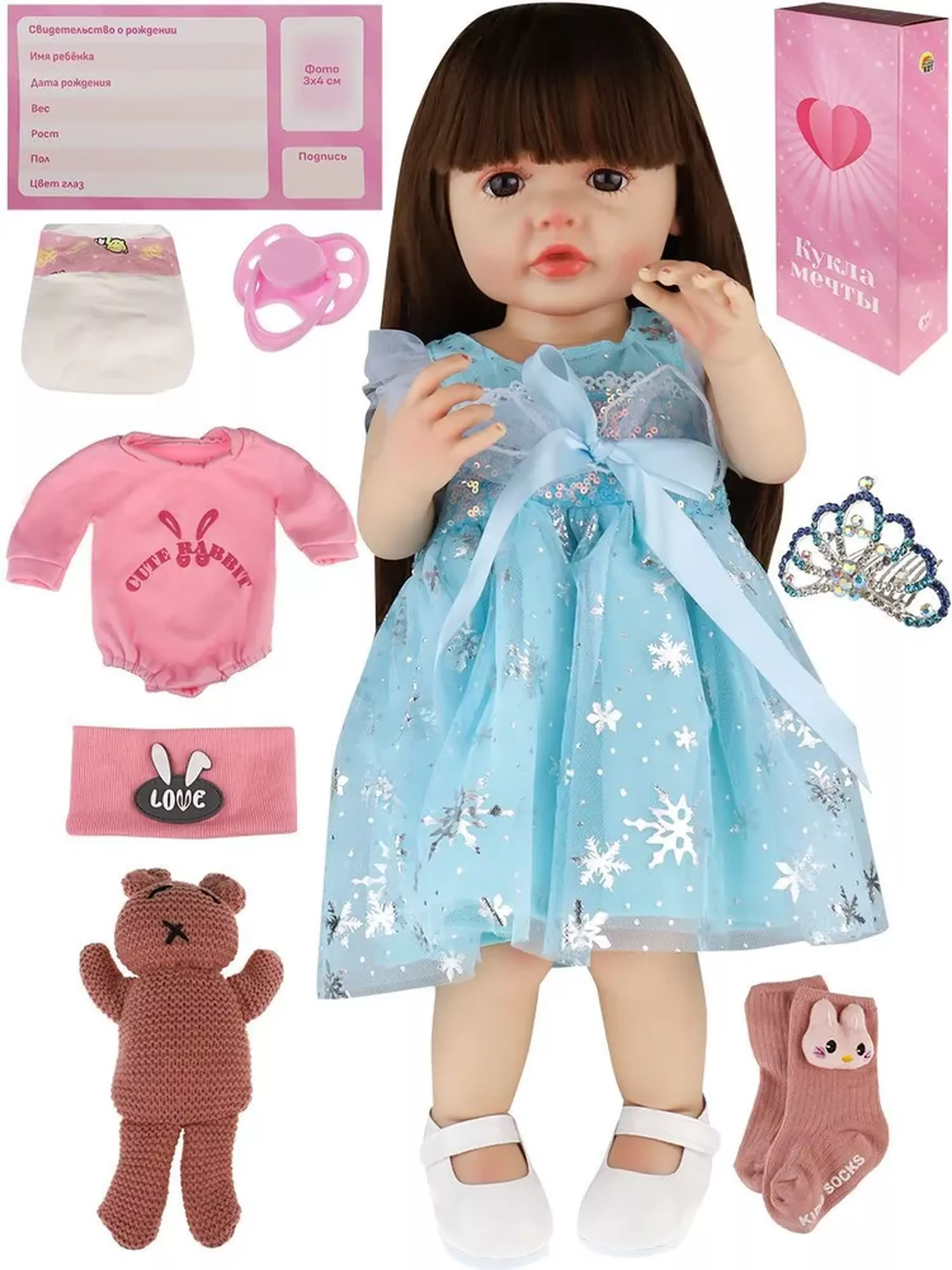 Кукла мечты Reborn 55см (тело винил, одежда 2 компл.,аксесс. в наборе, свид.о рождении)