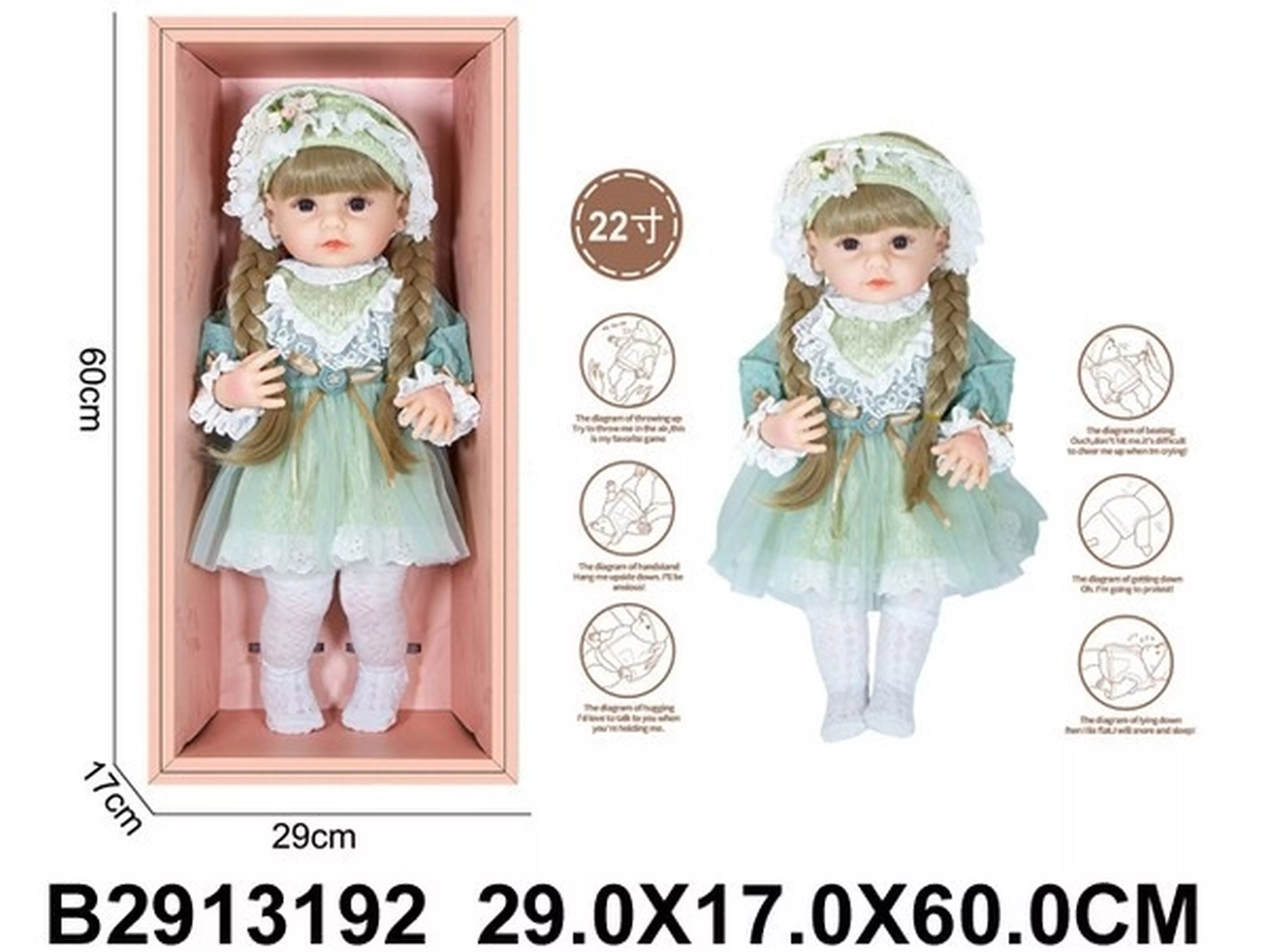 Кукла 55 см, виниловая, реагирует на прикосновения и положение тела, плачет, смеется