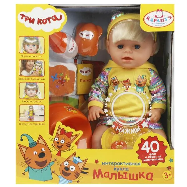 Кукла озвуч Три Кота 40см, пьет, пис, 40 фраз и песен, 8 акс КАРАПУЗ - Код 294998