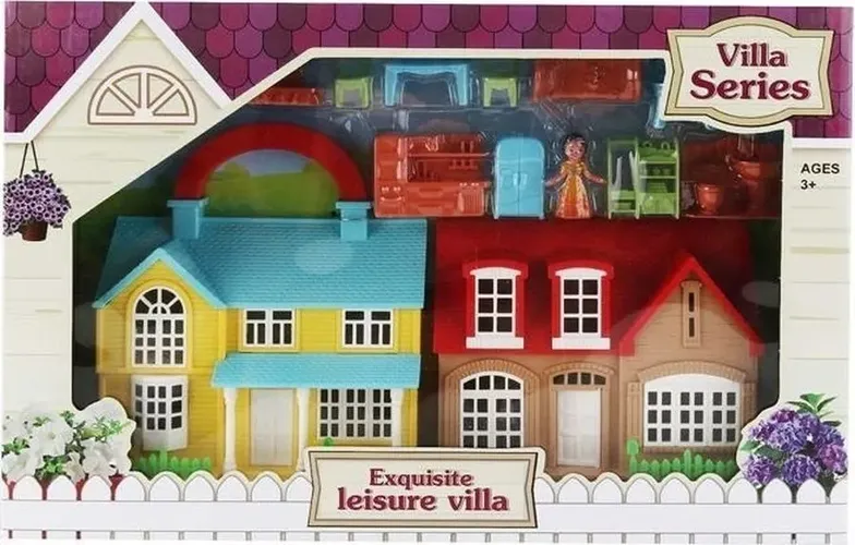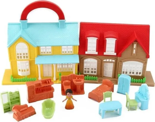 Дом кукольный, с мебелью и человечками, складной - Код 154585
