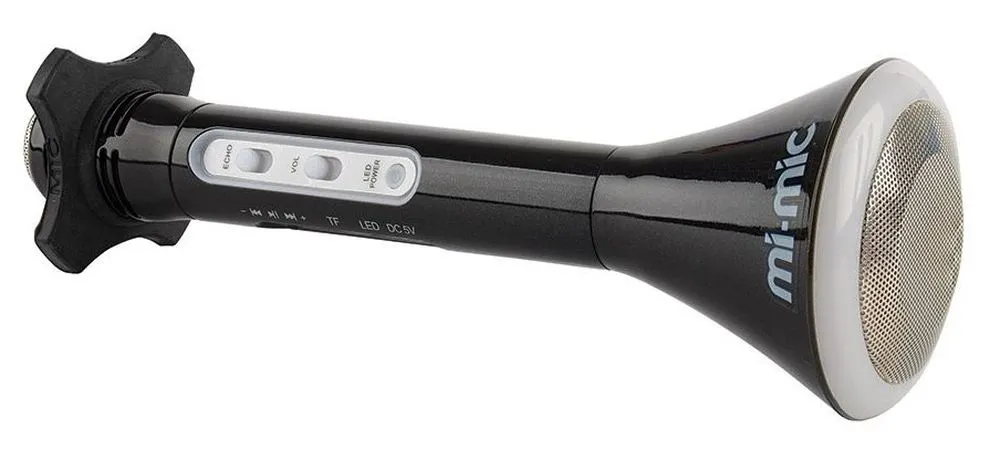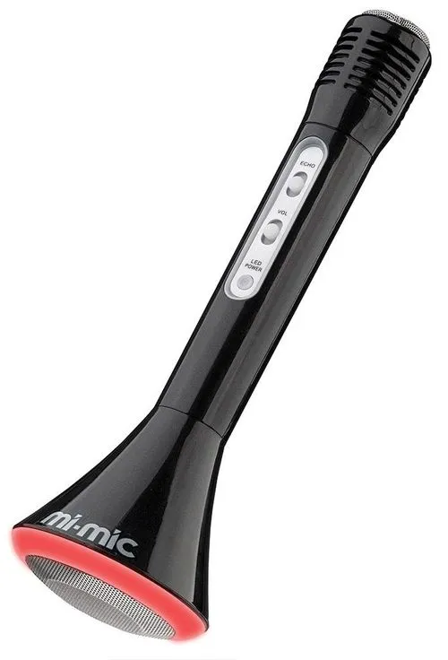 Микрофон оснащён встроенным динамиком, благодаря разнообразным функциям можно найти любую мелодию для пения и воспроизвести её. Микрофон оборудован специальной подставкой, от которой может работать на максимальном расстоянии до 10 метров. Совместим устройствами с передачей данных по Bluetooth и имеет разъем для micro-SD карты. Функция Эхо и световые эффекты микрофона помогут юной звезде сделать свое выступление более зрелищным и эффектным.