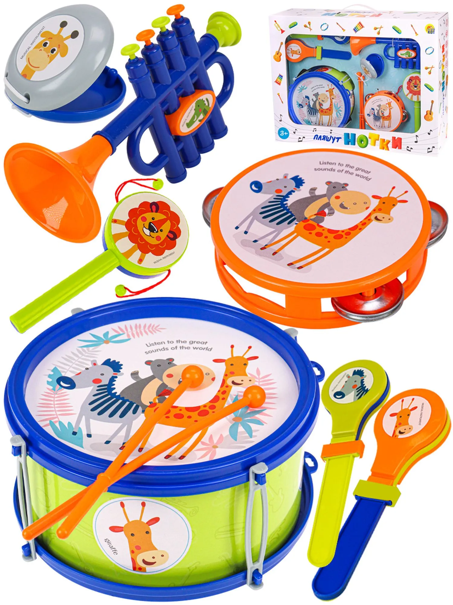 Набор музыкальных инструментов-4"Веселый оркестр" (7 инструментов,в коробке)