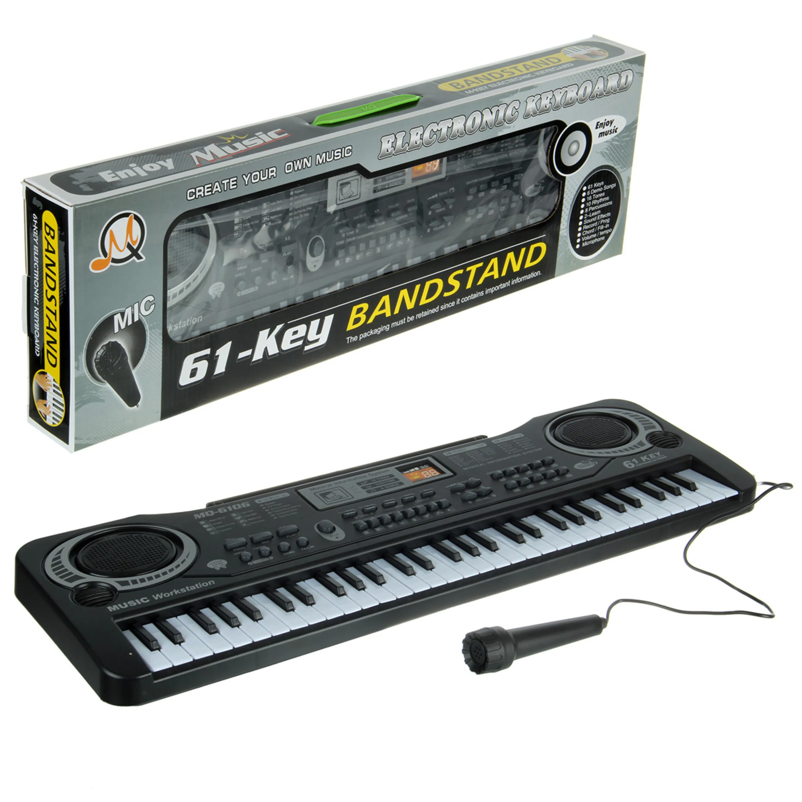 Синтезатор электронный на бат. 61 клавиша, с микроф, 54.5х17.5х5.5 см.