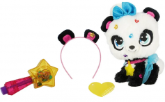 Помимо самой игрушки, к ней прилагаются 7 аксессуаров: шиммерайзер, более 200 блесток, ободок с ушками панды, расческа, браслет, резиночка для волос, бантик для волос.
