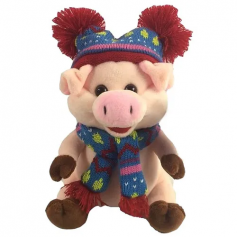 "ИГРАЕМ ВМЕСТЕ" Мягкая игрушка Поросенок в шапке с помпонами, 17см - Код 135737