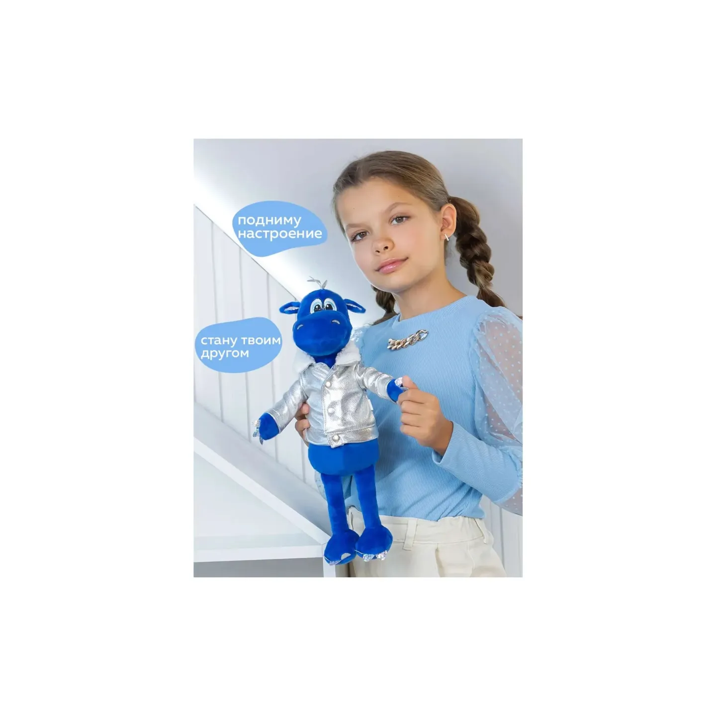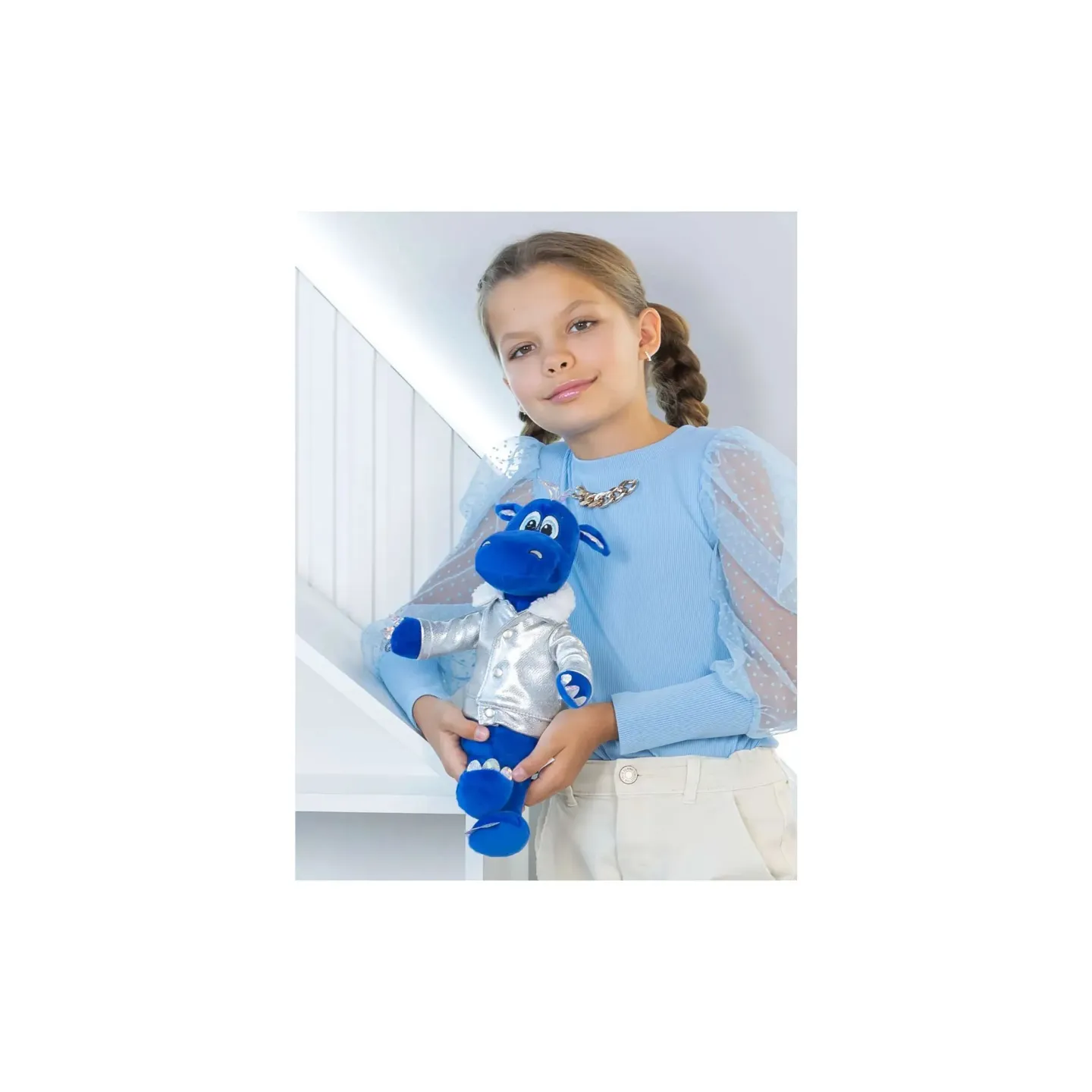Дракон Дизель, синий, в косухе, 25см. Арт. 302сн/25/кр - Код 242856