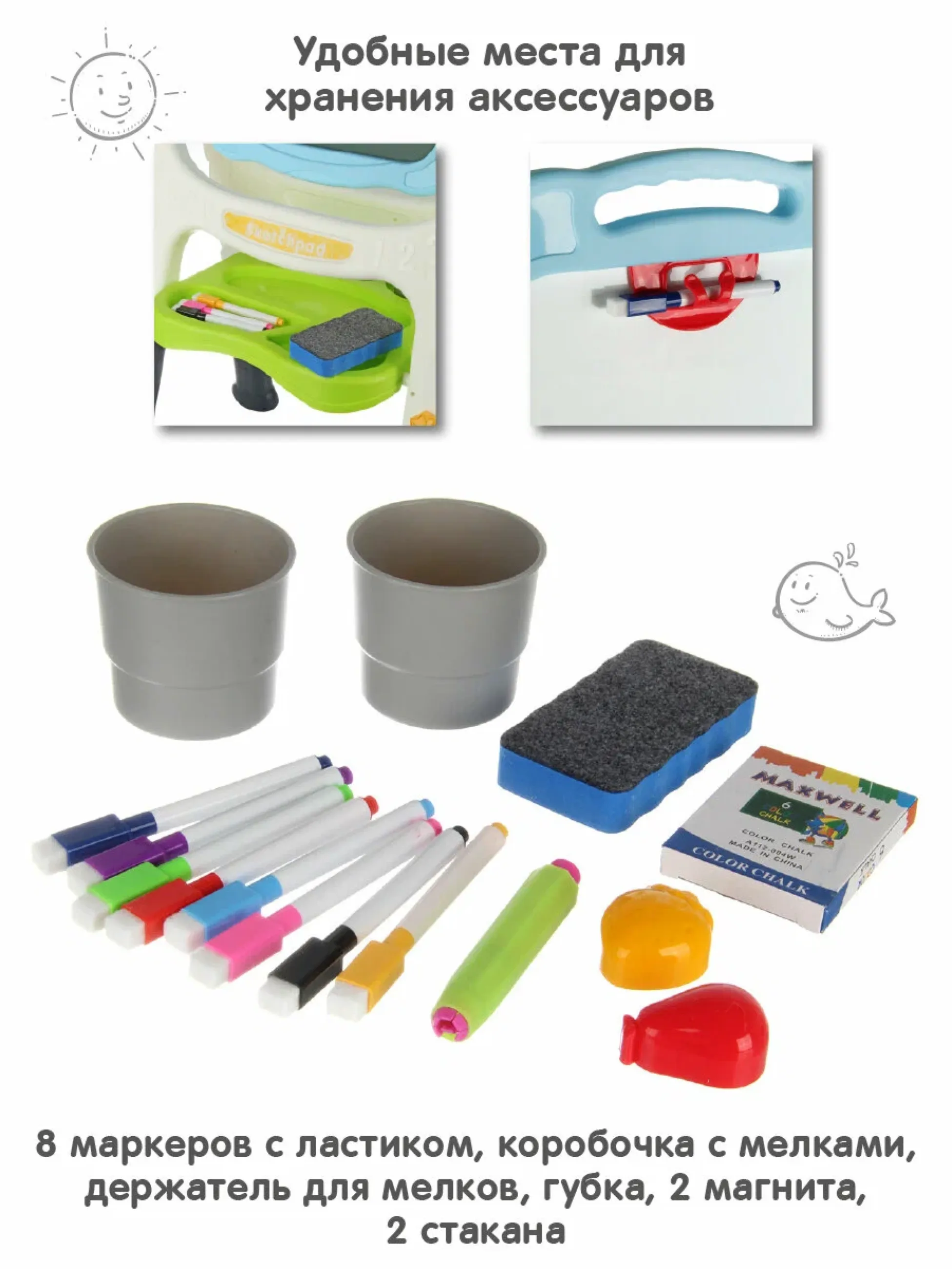 Доска для рисования "Мольберт", двусторон, высота 88 см, в кор., 59-43,5-11,4 - Код 293767