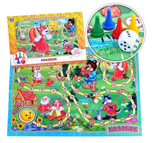 НАСТОЛЬНАЯ ИГРА-ХОДИЛКА "УМНЫЕ ИГРЫ" "КОЛОБОК" В РУСС - Код 182263