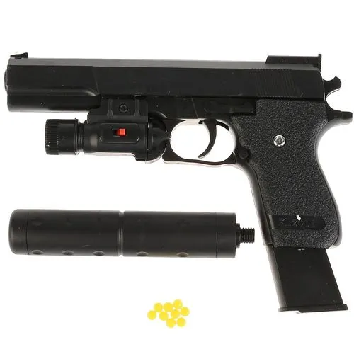 Пистолет с фонарем и глушителем с пульками