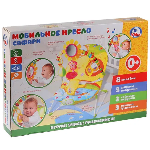 Мягкий шезлонг станет любимым местом для игр и отдыха Вашего крохи. Малыш не будет скучать, рассматривая мягкие игрушки, расположенные на ручке, будет тянуться к ним, хватать и развлекаться с шуршалками. Вибрация и приятная музыка поможет малышу расслабиться и легко уснуть, позволяя маме в это время заняться своими личными делами.