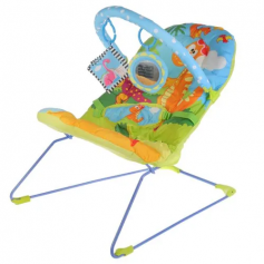 Шезлонг «Дино» в период бодрствования ребенка можно использовать с развивающей дугой, чтобы малыш играл с книжкой-шуршалкой и безопасным зеркальцем. А если кроха утомиться, дугу можно снять и успокоить кроху легкими покачиваниями, благодаря которым он сладко уснет.