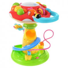 Развивающая игрушка «Удивительный грибок» определенно станет любимой игрушкой Вашего малыша! Игрушка представляет собой мухомор с тремя шариками и множеством развлекательных функций. На шляпке гриба находится отверстие, через которое малышу будет интересно пускать шарики. Они задорно скатятся по синей спиралевидной горке с сопровождающей их веселой мелодией. Один из шариков светится. Также у подножия мухомора располагается небольшой лабиринт с мотыльками. Крохе понравится перемещать мотыльков по изогнутой проволоке в разные стороны. На стволе гриба располагаются шестеренки в виде цветков – их можно крутить. А чтобы малыш смог потренировать слух и музыкальные навыки, на шляпке располагается настоящее пианино в виде гусеницы. Каждый сегмент производит свой звук. Улитку можно двигать взад-вперед по дугообразному пути. Играя с грибом, малыш развивает мелкую моторику, тактильные ощущения, слуховое и зрительное восприятие, воображение и память.