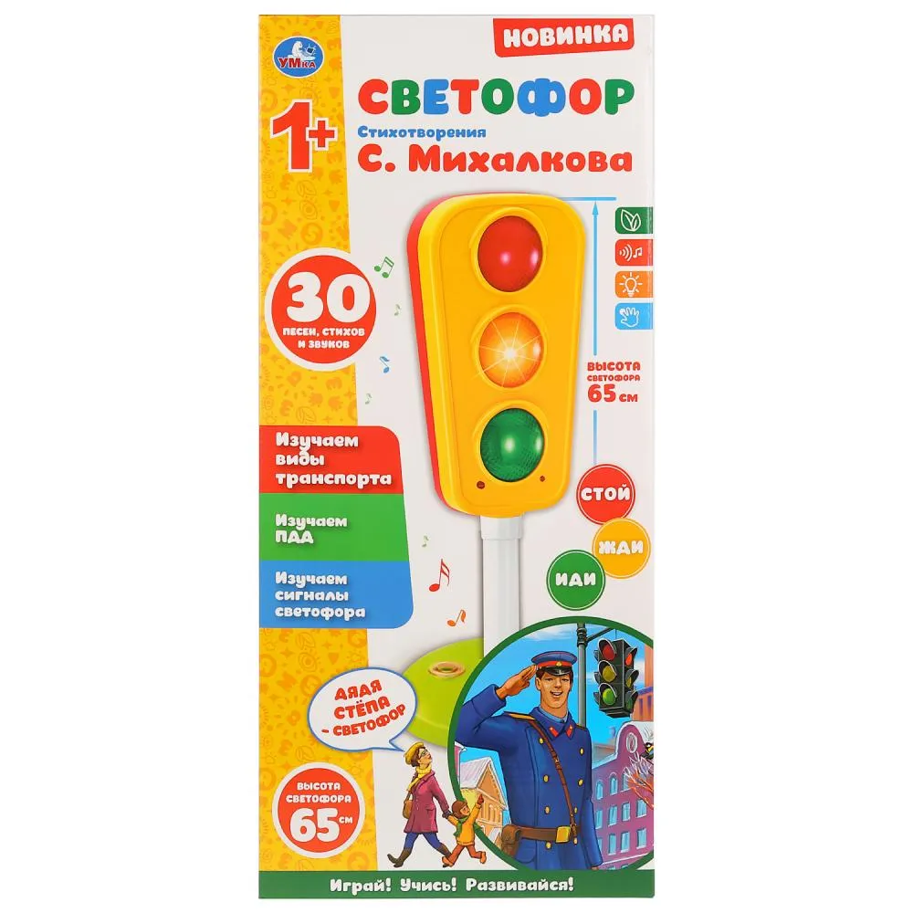 Музыкальный светофор МИХАЛКОВ С. стихи, 65см высота, на бат. со светом в кор. - Код 161406