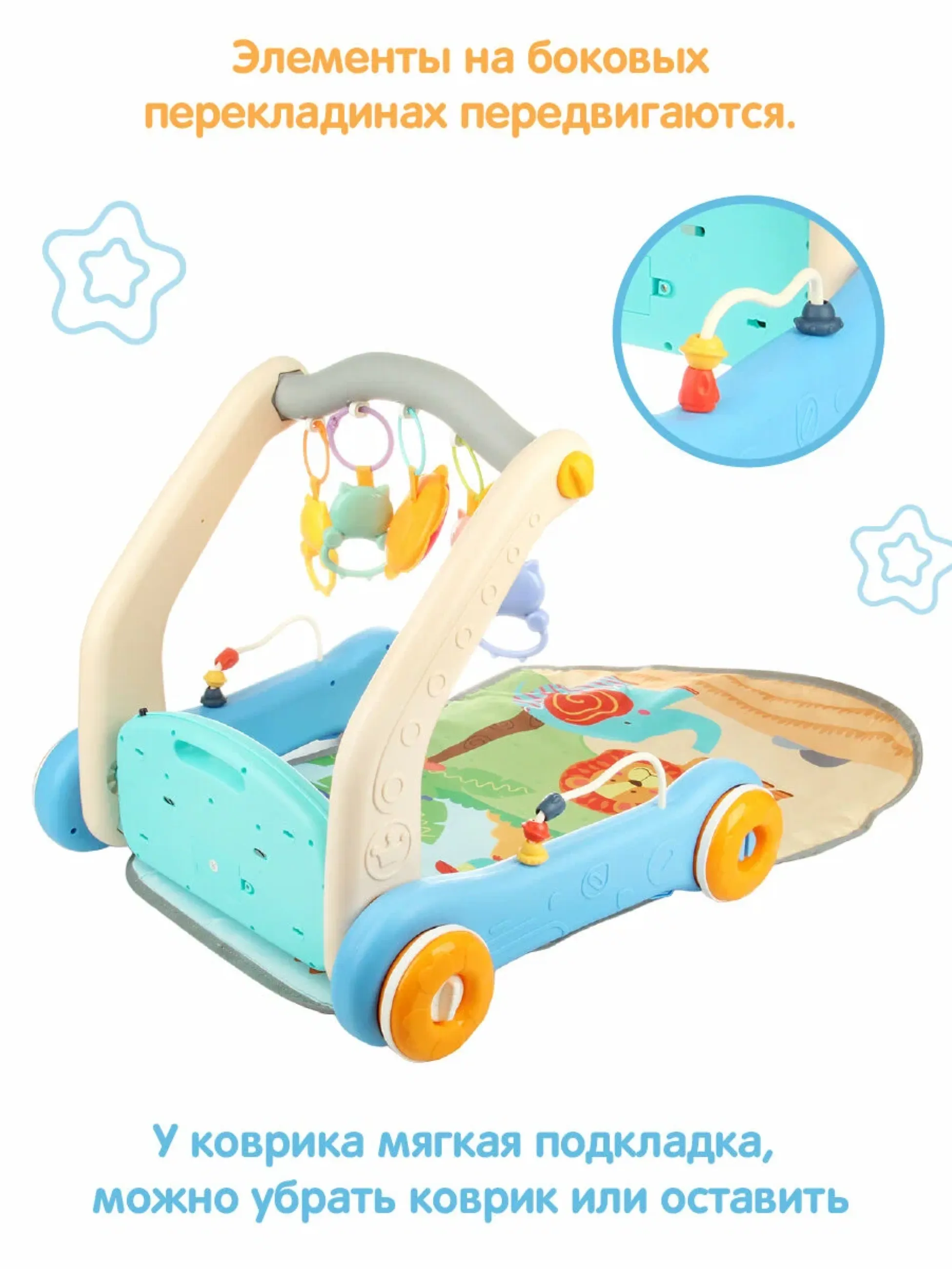 Развивающая игрушка коврик-ходунки 2-в-1 "Сафари", синий, кор. - Код 293937