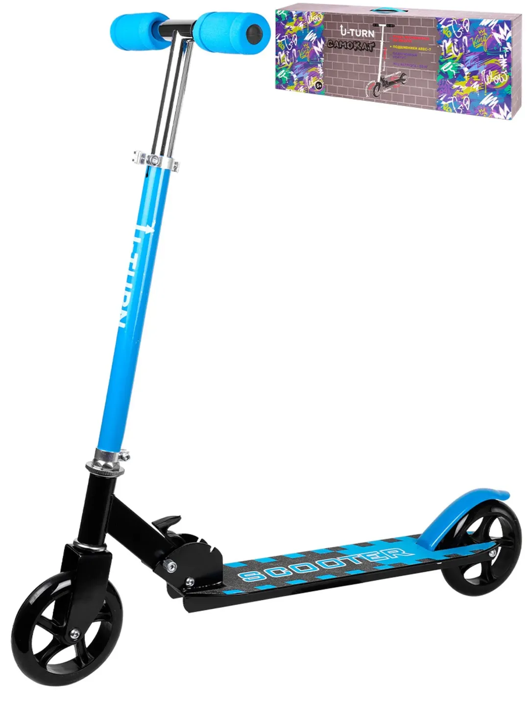 Самокат двухколесный (колеса PU 14,5 см, 73*10*66-82,5 см, макс. вес 50 кг, голубой)
