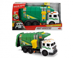 Мусоровоз зелёный — переработка мусора это большое удовольствие! Грузовики по переработке отходов, такие как City Cleaner, также популярны в Dickie Toys. Мусорный бак, поднимается лифтом на боковой части автомобиля, а содержимое опрокидывается в большую погрузочную зону. Через открывающуюся заднюю дверь, можно выкинуть мусор в процессе игры. Используя световые и звуковые эффекты одним нажатием кнопки, юные уборщики улиц могут изучить работу знакомых автомобилей.