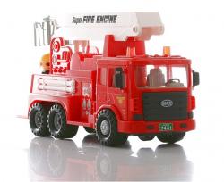 Эта замечательная пожарная машина MAX от Daesung выглядит очень реалистично, она хорошо проработана и детализирована. У машинки открываются и закрываются дверцы кабинки, она оснащена инерционным механизмом, лестница выдвигается и поворачивается на 360 градусов. Цвет машины – красный, в комплекте идет небольшая фигурка пожарника в каске, его можно усадить в кабину или поместить в специальный отсек на заднем бампере.