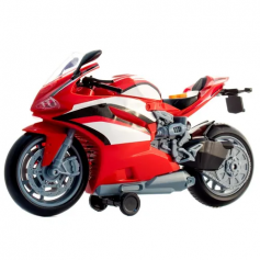 Стильный современный мотоцикл с максимально точной проработкой всех деталей, со световыми и звуковыми эффектами, идеально впишется в любые игры ребенка: от импровизированных погонь до езды по дорогам города.