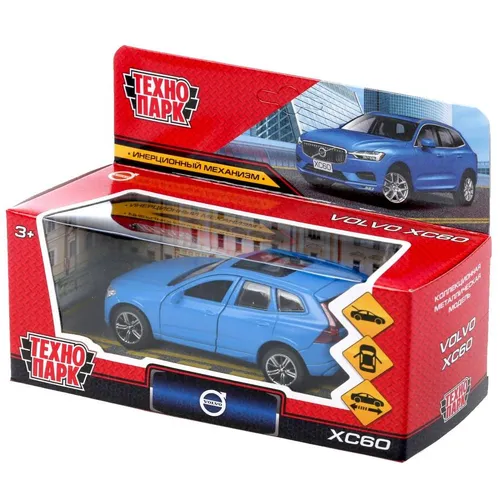 Машина металл VOLVO xc60 r-design матовый синий 12 см, двери, багаж, в кор. Технопарк - Код 131883