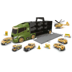 Набор машинок Handers "Мега трейлер: армия" (40х8,5х13 см, 5 маш., вертол., 4 аксесс., кейс с ручк.) - Код 157352