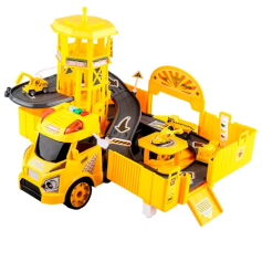Перед вами впечатляющий игровой набор "Парковка трасформирующаяся: база строителей", способный трансформироваться из автомобиля в большой трек-пароковку.