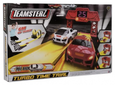Включает в себя две трассы трека с двойными петлями, финишная линия с встроенным таймером и определителем победителя, 2 инерционных машинки в комплекте.